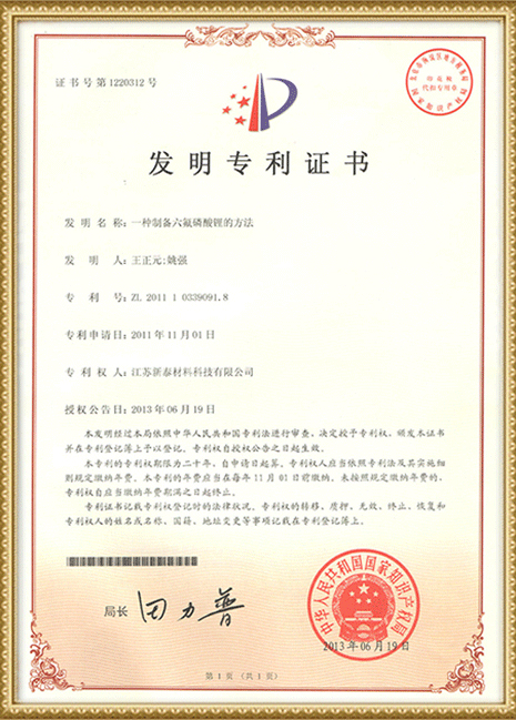 2016年3月,與常州大學(xué)開(kāi)展產(chǎn)學(xué)研合作,簽訂了總金額為3000萬(wàn)元的“六氟磷酸鋰的工藝優(yōu)化、評(píng)價(jià)及應(yīng)用研究”技術(shù)開(kāi)發(fā)(委托)合同,并建立“江蘇新泰常大鋰電池材料研究院”。